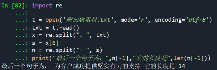 print("最后一个句子为:",n[-1],"它的长度是",len(n[-1]))