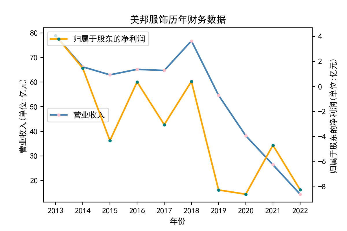 反观于美邦服饰近年来营业收入却一路下跌,原因是多方面的。从产品本身来说,美邦服饰早年间是走中端产品路线,受到年轻人的喜爱。如今产品的设计风格得不到创新,价格定位不清晰,难以受到消费者的喜爱。 在经营管理层面,美邦服饰也存在着一些漏洞,存货周转率和总资产周转率持续下降,运营效率不足。